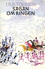 Det tycks inte ha gjorts något omtryck av Hompen, och boken har blivit sällsynt och värdefull. Fem av illustrationerna finns återgivna i The Annotated Hobbit. * Studia Neophilologica vol. XX, nummer 1-2. Artikeln finns på sidorna [65]-72. ** Tore Zetterholm, 1915-2001. Författare till 28 skönlitterära böcker utgivna mellan 1940 och 1995; skrev även böcker om Kina, Tibet, buddism, litteraturhistoria; litterära antologier; har förutom The Hobbit översatt verk av Arthur Koestler med flera (bland annat en samling av Chestertons Fader Brown-berättelser). Var även en tid ordförande i Sveriges Dramatikerförbund. Torbjörn Zetterholm, 1921- (Tores yngre bror). Konstnär inom olika tekniker, särskilt träsnitt; typiska motiv är landskap, djur och växter. Han har deltagit i konstutställningar över hela världen. Har även, förutom The Hobbit, bland annat illustrerat HC Andersen. *** Se brev 190:8 i Letters. I brev 188:2 finns en mer övergripande kritik. Härskarringen Det var ett annat förlag, Gebers, som prövade lyckan med The Lord of the Rings. I det fallet var svenskan, efter holländskan, det andra språket till vilket verket översattes, och de tre volymerna gavs ut 1959, 1960 och 1961. Den främsta drivkraften bakom detta var Disa Törngren, redaktör på Gebers. Till översättare valde hon Åke Ohlmarks, som tidigare (bland annat) hade översatt Eddan. Han kunde därför förväntas göra rättvisa åt de ”germanska” elementen i Tolkiens text*. Än en gång ligger översättningens anspråk på internationell berömmelse i Tolkiens dokumenterade kritik, och hans irritation över bilden Ohlmarks gav av honom i bokens förord. ”Ohlmarks är en mycket fåfäng man (vilket jag upptäckte i vår korrespondens) som föredrar sina egna fantasier framför fakta, och är synnerligen benägen att simulera kunskap han inte har” (Letters, brev 228:6), löd Tolkiens adekvata observation; exemplen i brev 229 illustrerar detta. I vissa fall kom dock Ohlmarks förtrogenhet med fornnordiska termer och deras litterära eller arkaiska motsvarigheter i svenska till sin rätt. För elf använde han alv, och räddade därmed ordet från att försjunka i samma glömska som van och dis. Valet kan tyckas självklart i efterhand, men som vi kunnat se ovan var så inte fallet för Zetterholm. Det var ett djärvt drag (liksom Tolkiens bruk av elf på, sätt och vis**) och passade perfekt – den belagda användningen av ordet uppvisade liknande konnotationer som engelskans elf. På ett likartat sätt översatte Ohlmarks Westron med väströna, som hade en förebild i det sällsynta gamla ordet norröna (syftande på språkgemenskapen kring Nordsjön under den nordiska heroiska